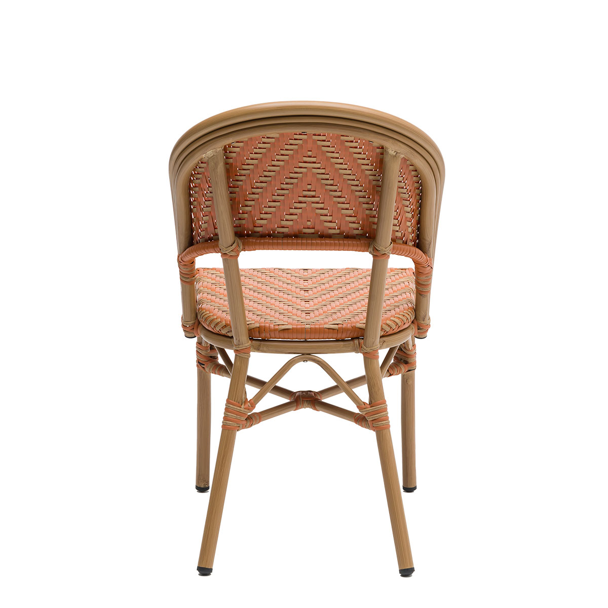 Chair for the hospitality industry, specially designed for outdoor or indoor use, with a new way of weaving the wicker, combining 4 colors.