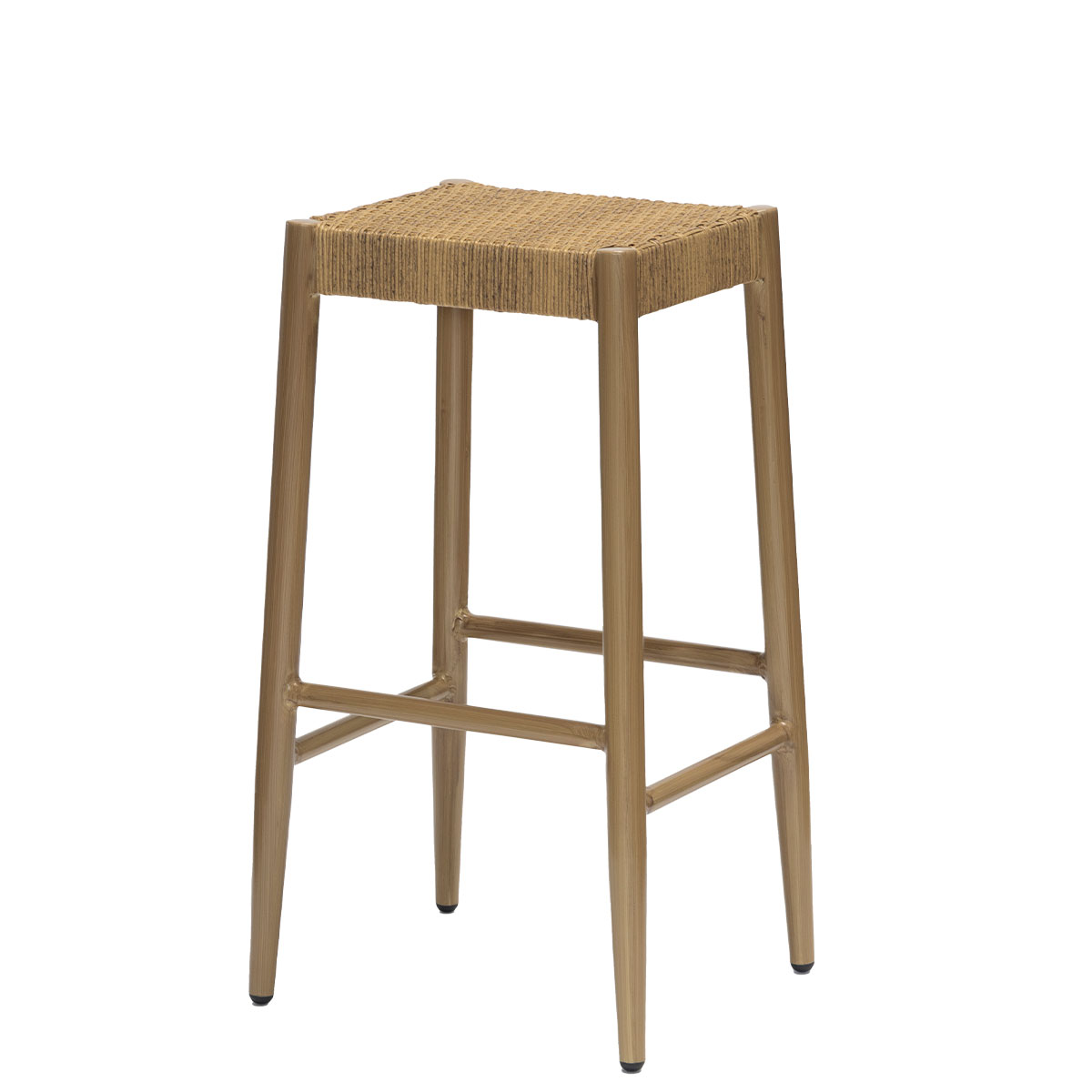 Banqueta sin respaldo de estilo tropical. Apta para uso exterior.